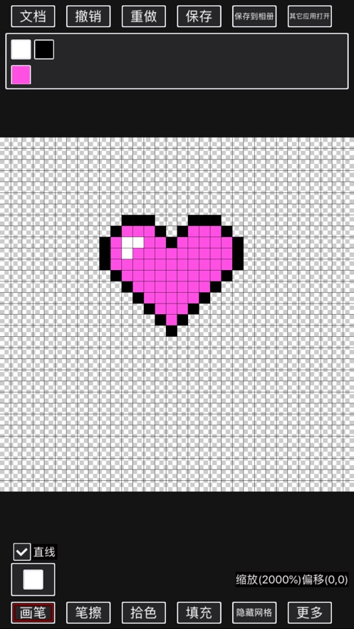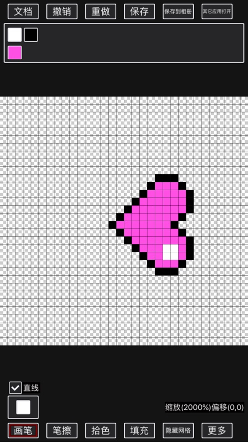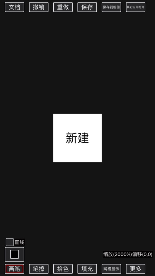 界面简洁,提供画笔,填充,笔擦,拾色等基本功能,支持撤销和重做;